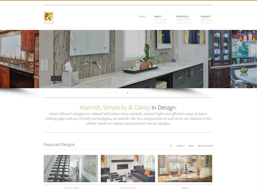 Adam Gibson Design, the Indianapolis design firm of Adam Gibson, needed to implement a website to showcase previous design work on a tight deadline based on an ad taken out in Sophisticated Living. Adam has a long career as a creative professional, both in the design/construction as well as music fields, and needed to showcase his considerable design talents for the inevitable influx of internet visitors from his ad campaign.